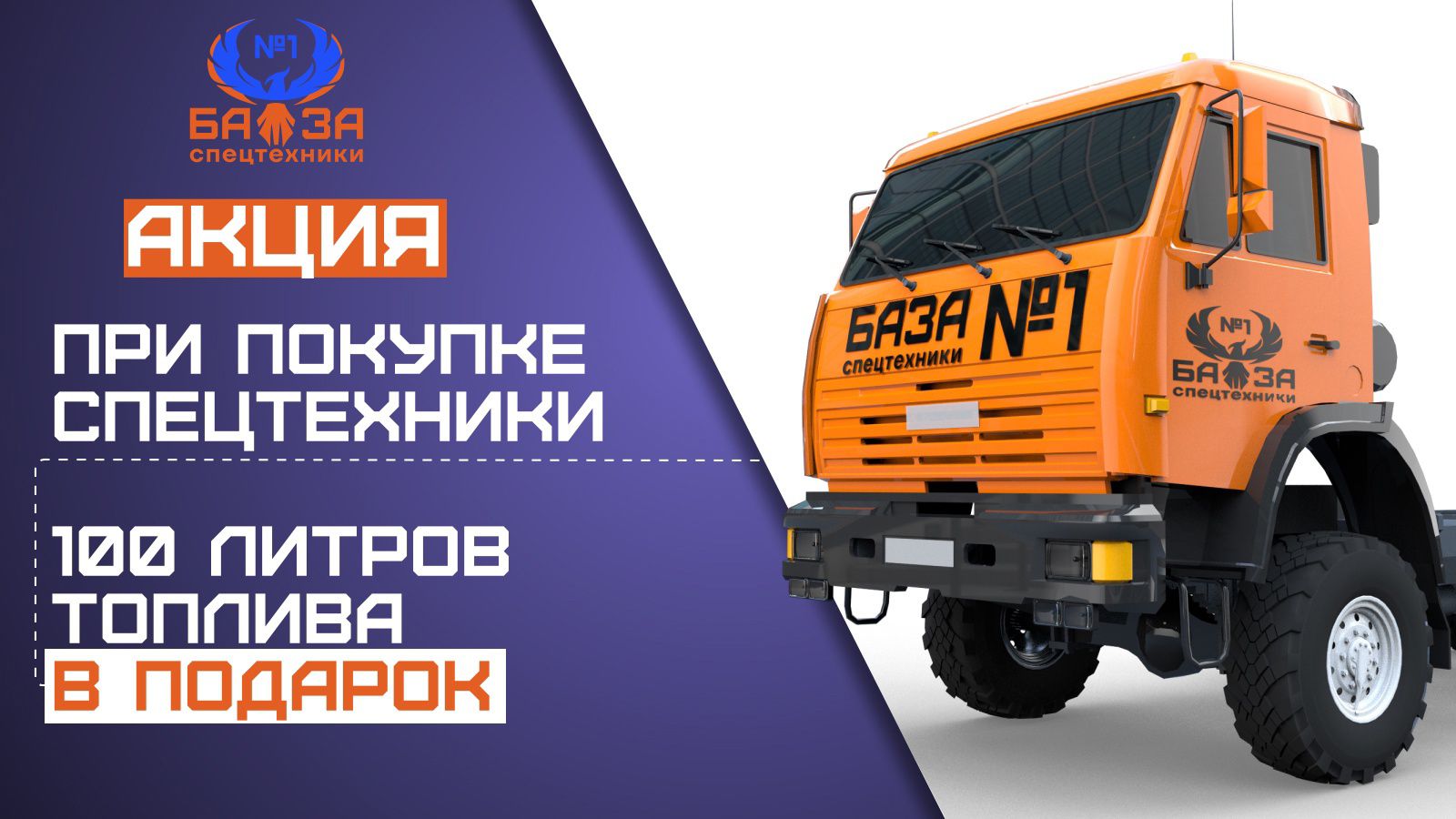 Мы запускаем бессрочную акцию! При покупке любой спецтехники, мы дарим 100 литров топлива в ПОДАРОК!